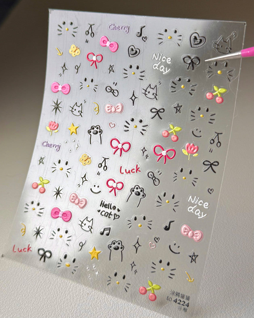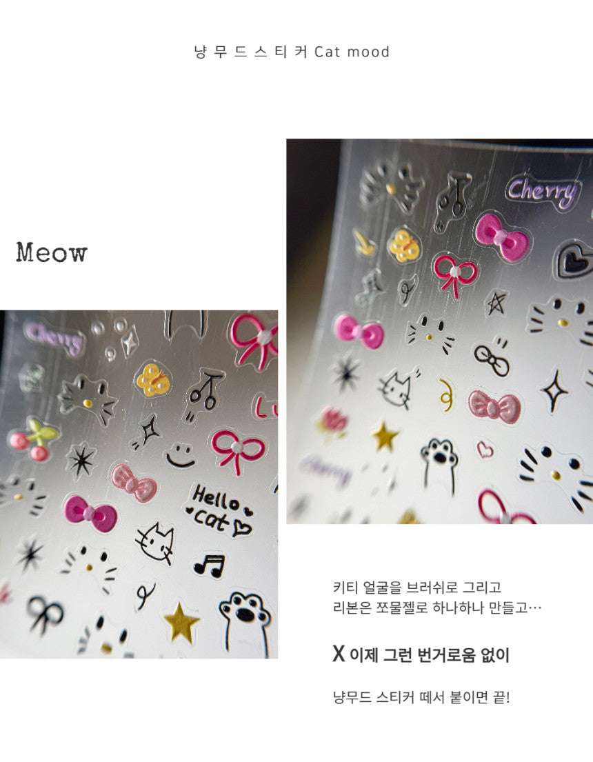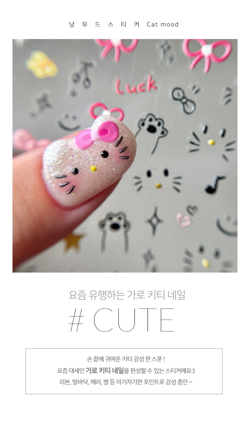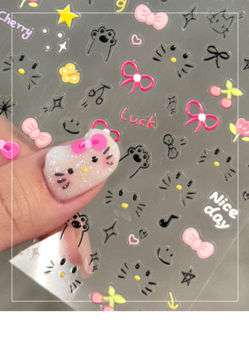【AURA GLITTER】Kitty Ribbon Nail Sticker