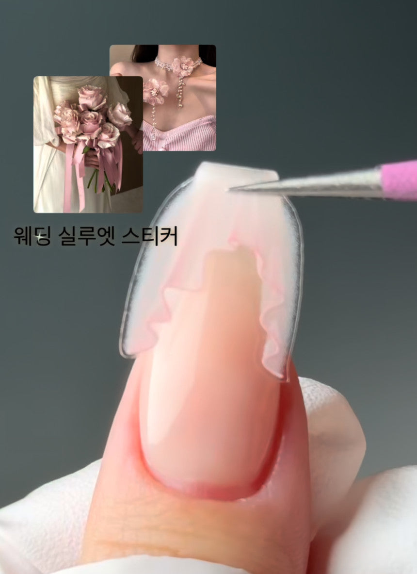 【AURA GLITTER】[Self-made] Wedding Silhouette Nail Sticker Lace Chiffon