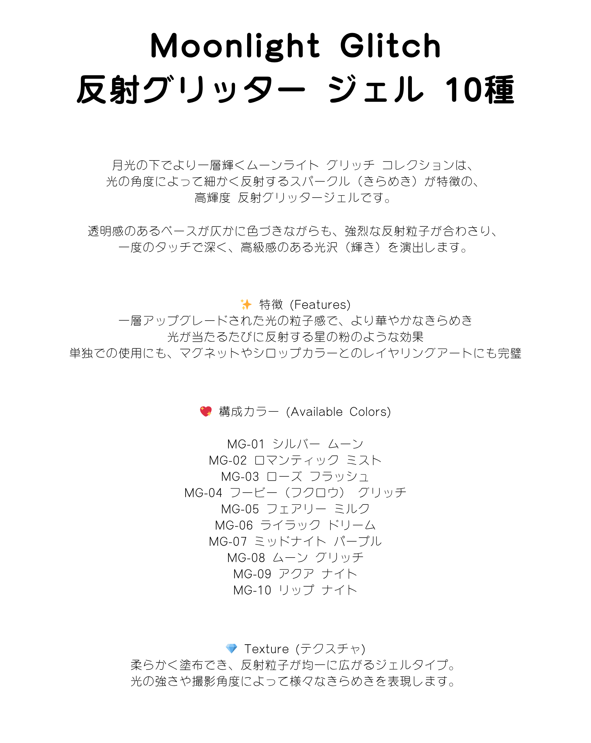 【CLODI】Moonlight Glitz Reflective Glitter Gel 10 Colors Collection