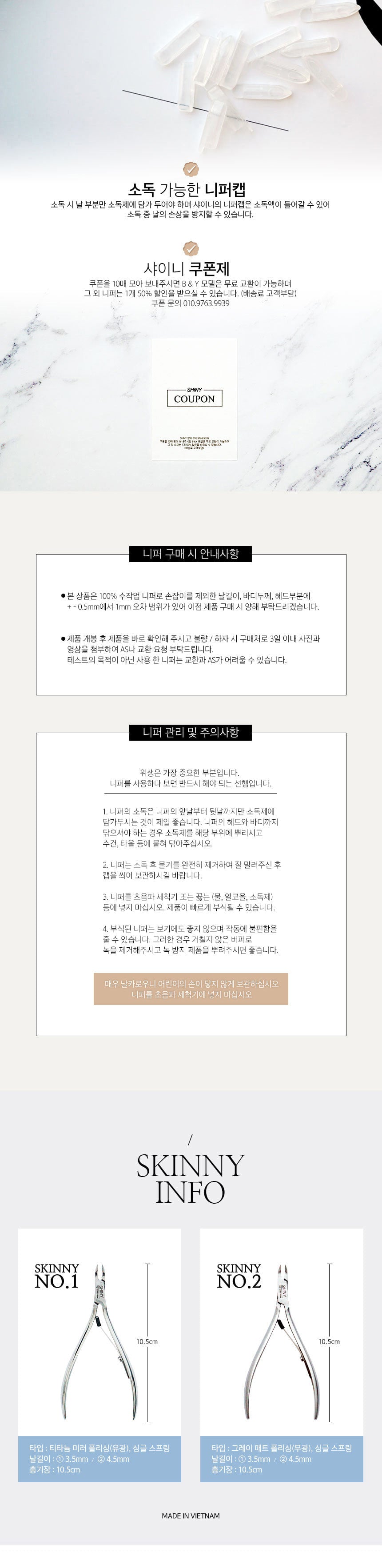 【SHINY】Skinny Professional Cuticle Nail Nipper No. 1/No. 2